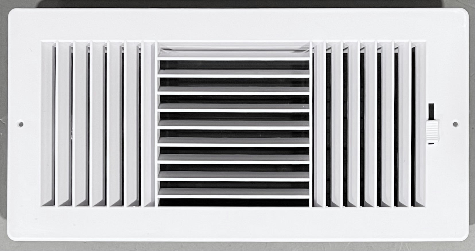 Three-Way Plastic Side Wall/Ceiling Register in White 14"w X 6"h for Duct Opening (Outside Dimension is 15.75"w X 8"h)