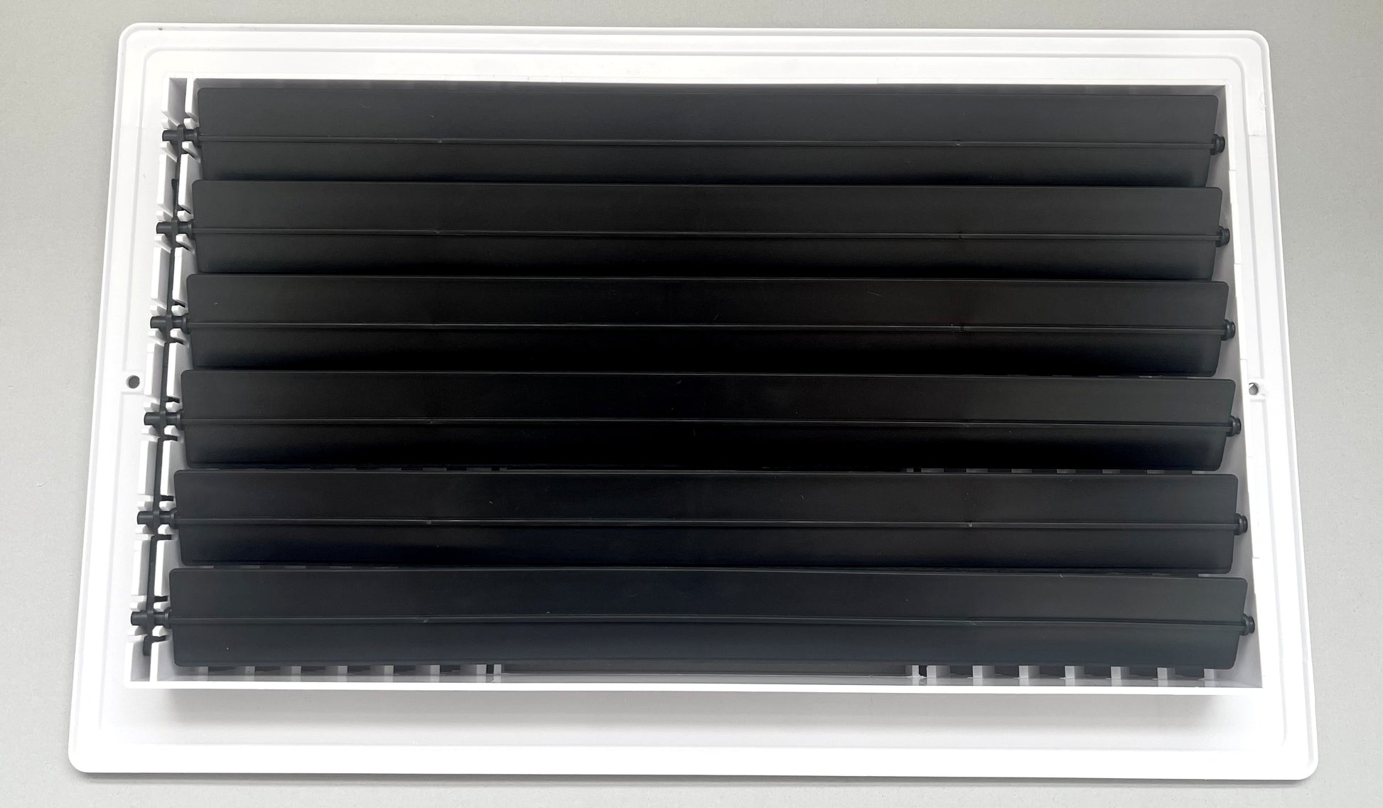 Our plastic sidewall/ceiling register is made of ABS plastic in bright white. It has built-in damper to control air flow. There are two screw holes on each side of the register to fix on the surface of wall or ceiling.